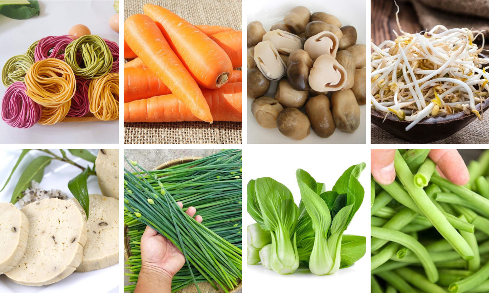 Nguyên liệu mì xào chay thập cẩm đầy màu sắc